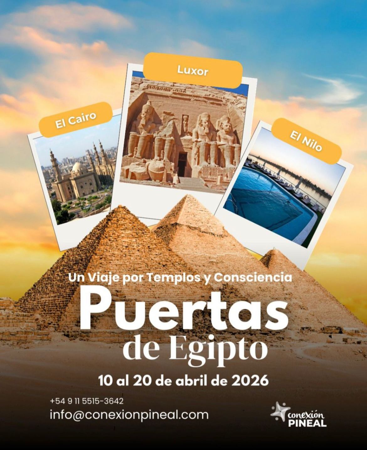 Este viaje propone recorrer los grandes templos, ciudades y paisajes sagrados de Egipto y, al mismo tiempo, vivir una experiencia profunda de Conexión Pineal, donde historia, energía y conciencia se encuentran.